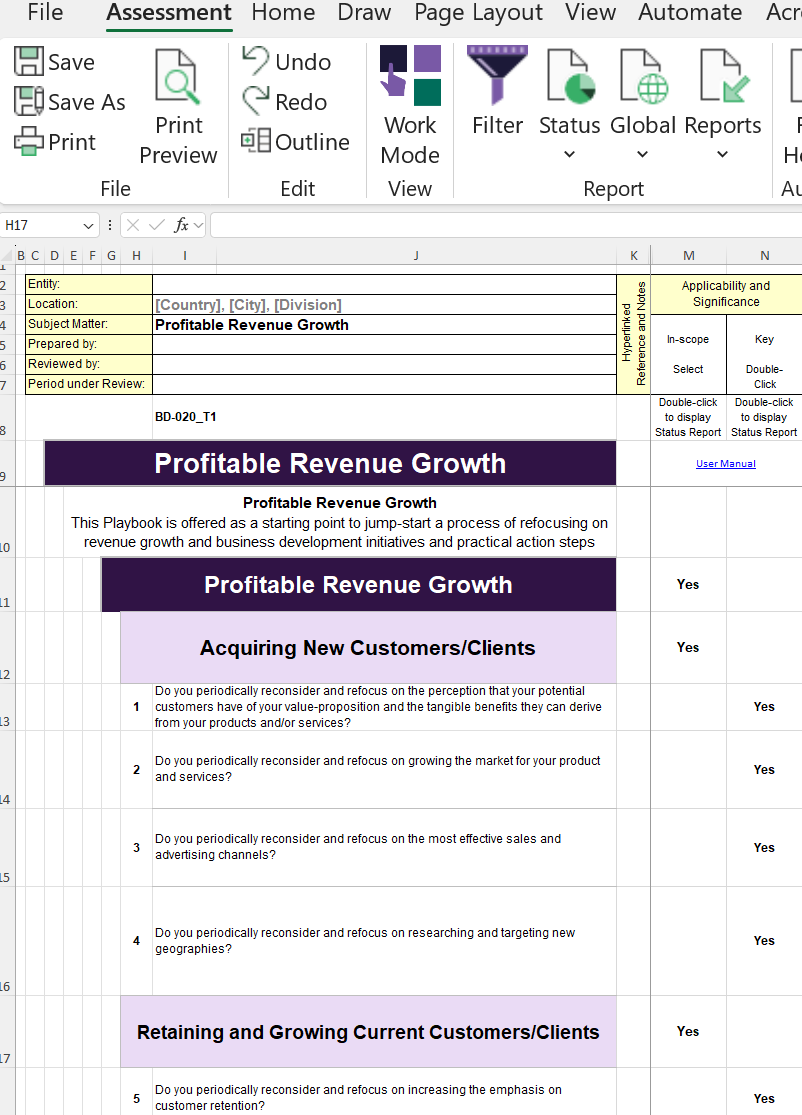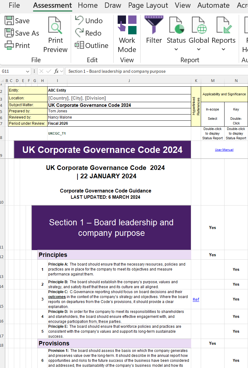 Your completed Playbook produces clear, professional outputs with authorship, context and traceability — ready for management, boards and regulators.