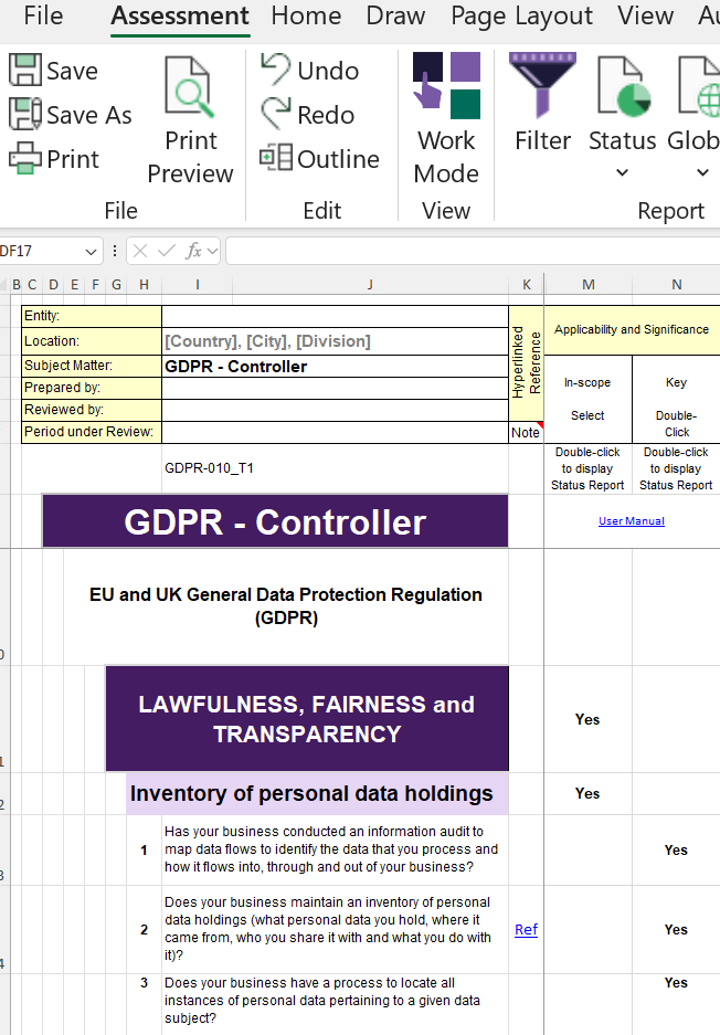 We provide you with a tailored, Excel-based compliance template, pre-programmed to reflect specific regulatory requirements and best practice.